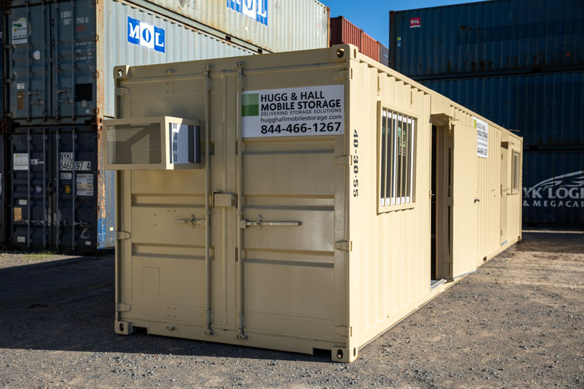 Our 40' SECURITY OFFICE UNIT is 40' long, 8' wide and 8'6" tall. Providing 320 square feet of office space. Our portable office units, made from modified steel storage containers, are ideal for construction sites, manufacturing plants, and retailers. They're affordable, customizable, and available for rent, sale, or lease.